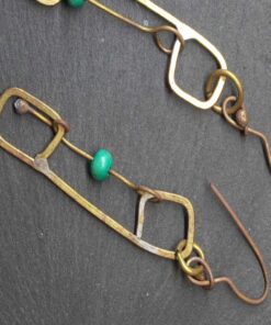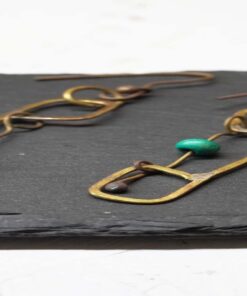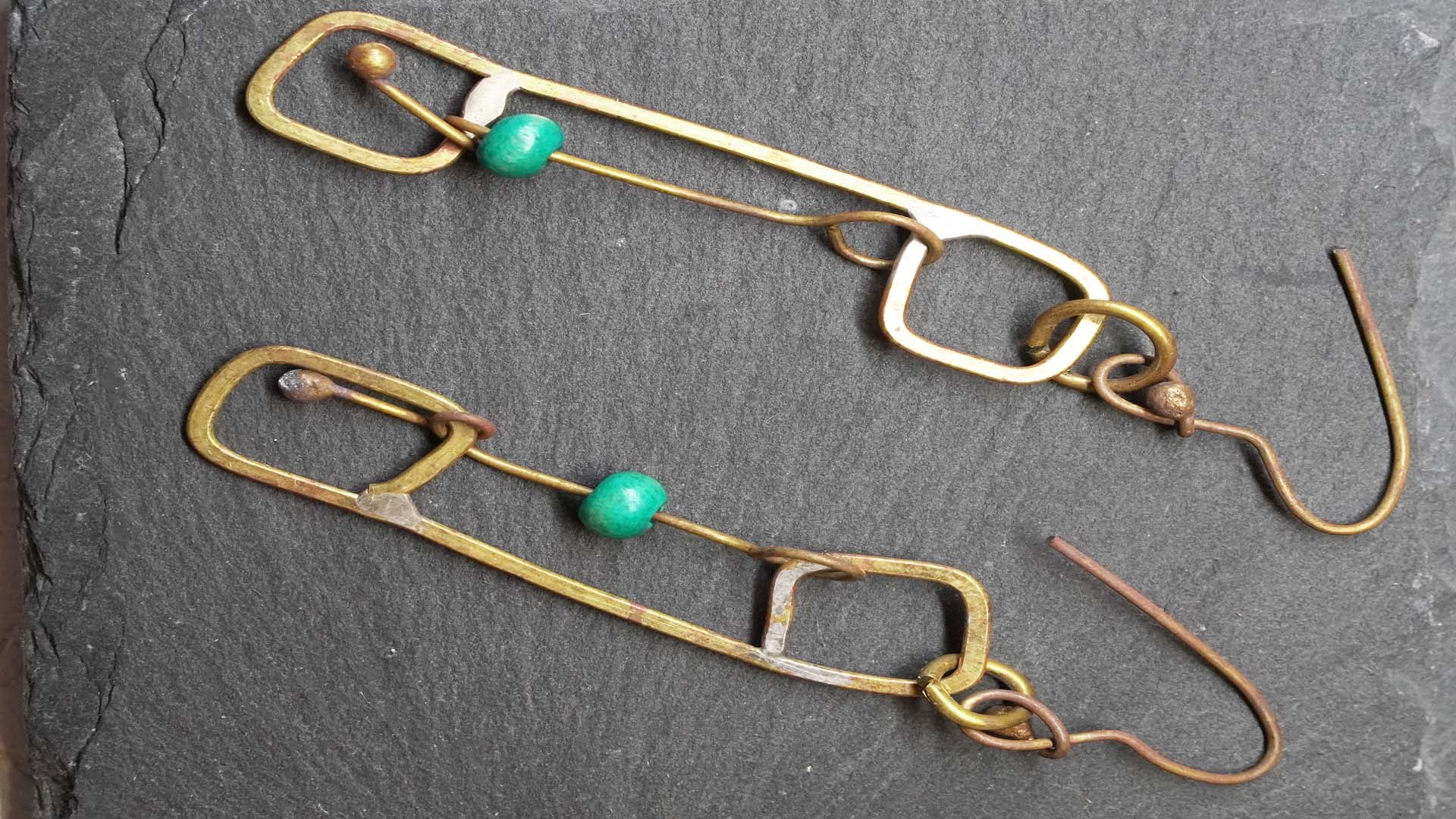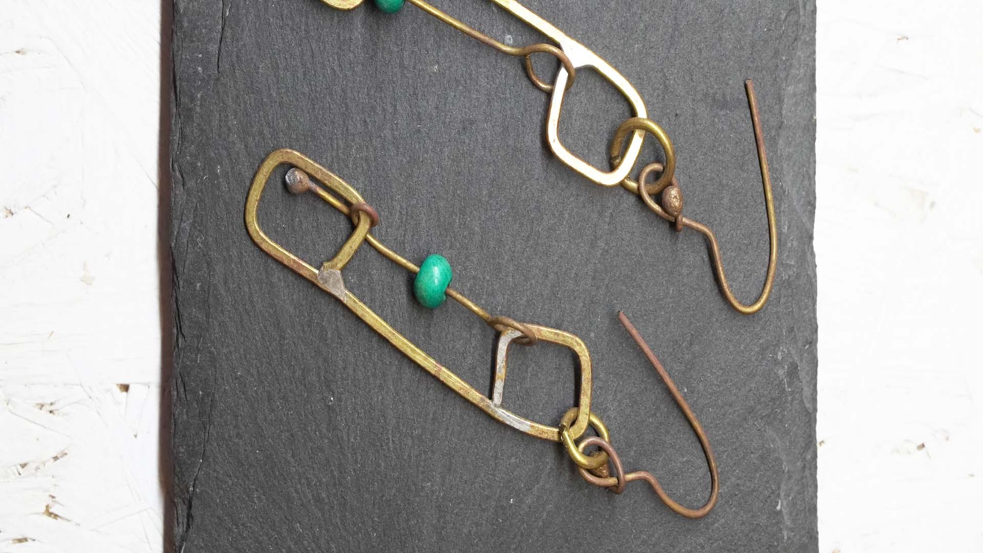 These unique earrings are a true work of art, handmade with a lot of passion and attention. The combination of brass and silver solder gives them an elegant and unique look, while the pearl as a detail adds a delicate and refined touch.