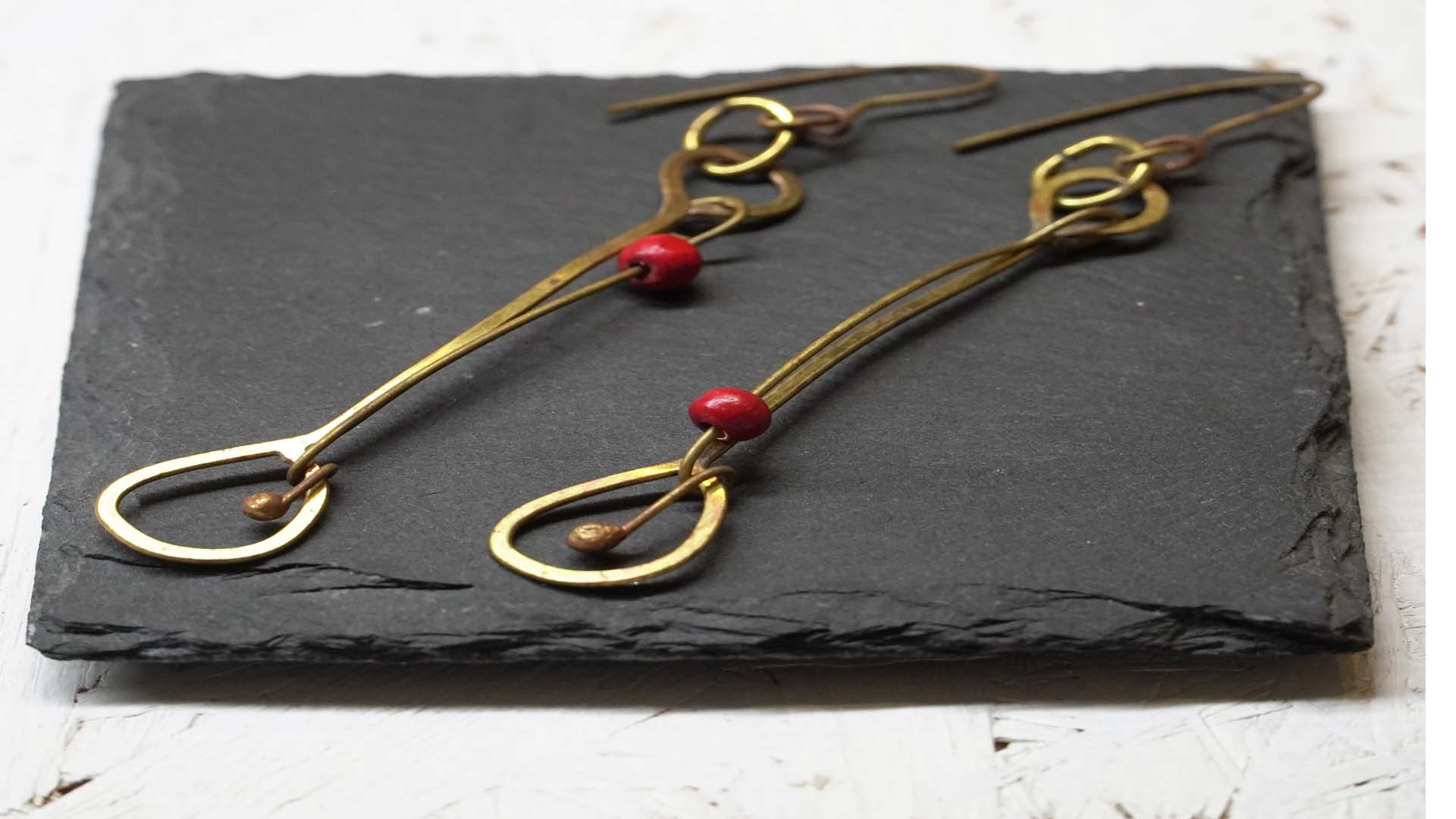 We create jewelry that combines art and wear. These brass earrings are handmade and sculptural in form, but thanks to their lightweight construction and careful finishing, they are perfectly wearable every day. A special detail is the silver soldering and the delicate addition of pearls, which emphasize their elegance and subtle appeal.