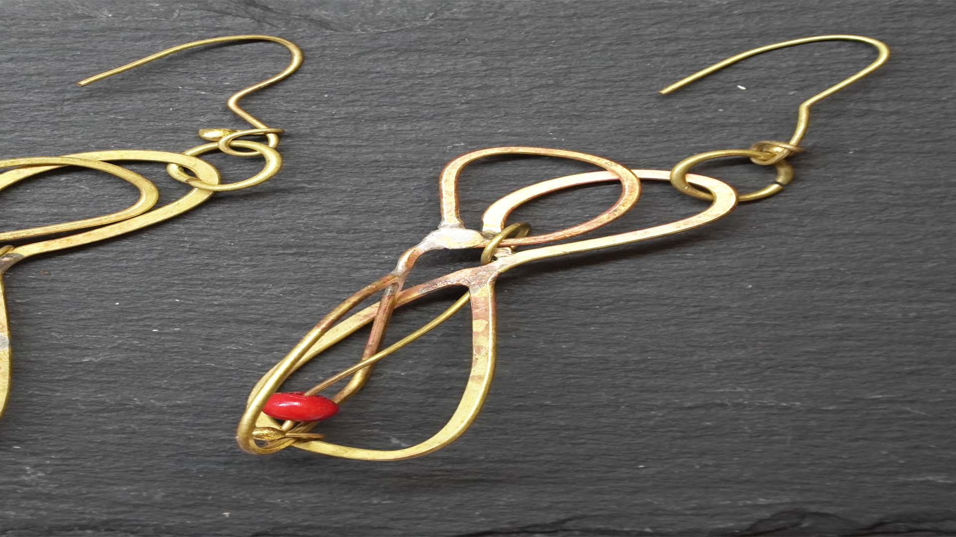 These handmade earrings made of brass, soldered with silver solder, represent a unique and exclusive piece. The elegant and sculptural design makes them special, a real work of art to wear. Perfect for those who appreciate originality and handwork, these earrings will highlight your style and personality. They are unique and created just for you – wear art.